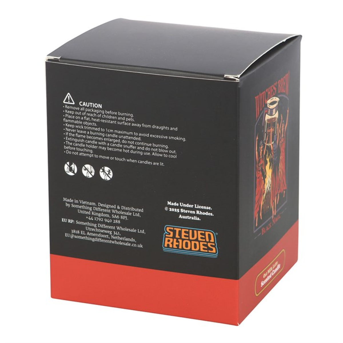 35-hour total burn time. Paraffin wax. Officially licensed Steven Rhodes product.